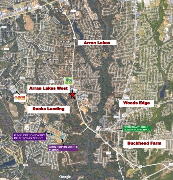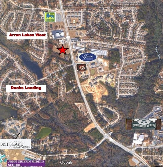 Take Raeford Rd west, turn left onto Bunce Rd. in 1.5 miles on right ,look for sign on property at the corner of Bingham and Lakeridge Dr.