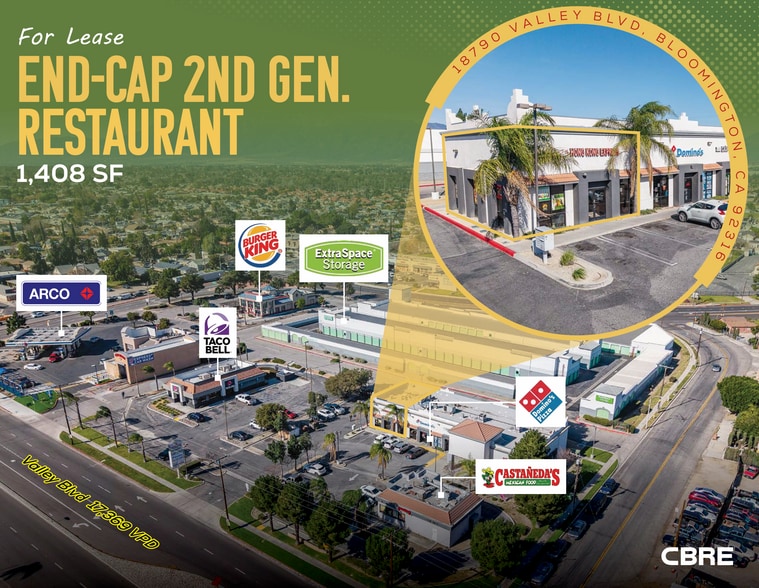 2nd. Gen End-Cap Restaurant - Bloomington 18790 Valley Blvd 1,408 SF of Retail Space Available in Bloomington, CA 92316