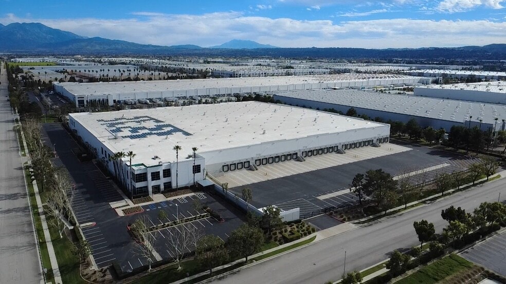 - Cross Dock Configuration with 3 Gate Entrances - 3,380 SF of Office Space - ESFR Sprinkler System with K-17 Heads - 30’ Minimum Clear Height at First Column - 63 Dock High Doors (9’x10’) - 30 DH Doors Include Mechanical Load Leveler, Seals, Lights and Signal Light - 11 DH Doors Include Edge of Dock Plates - 2 Ground Level Loading Doors - 2,000 Amps, 277/480 Volt Power (Verify) - 195’ and 180’ Truck Courts with additional 73 Trailer Parking Stalls - LED Warehouse Lighting - 50’x50’ Typical Column Spacing - New TPO Roof with Greater Insulation - Located on 15.95 Acres (42% Coverage) - Elevated Guard House - Prime Inland Empire East Logistics Location - Immediate access to major regional freeways including I-10, I-215, and SR-210 - Accessible Transportation Connectivity