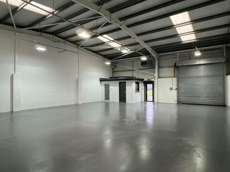 Modern trade counter / industrial premises of steel portal frame construction clad with modern insulated panels. Internally provides open-plan accommodation with welfare facilities. Electric roller shutter access with adjacent pedestrian access door opens out onto generous customer and staff parking. Benefits from 3 phase power, gas fired blower heaters, min eaves of 6 m.