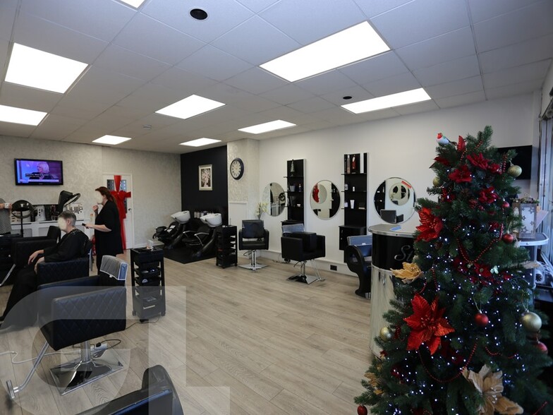 Description: This retail unit benefits from a glazed frontage with a security roller shutter and has been occupied for the past 15 years by an established beauty business. The accommodation is predominantly open plan and fitted with a suspended ceiling incorporating LED lighting, laminate flooring, and is maintained in good decorative order throughout. The unit is served by both gas and electricity supplies. The property is available from March 2026 and is positioned as the first unit in a parade comprising a good mix of occupiers. To the rear, there is a secondary exit providing access to parking for two cars. The unit also includes a well-maintained WC and staff welfare facilities.