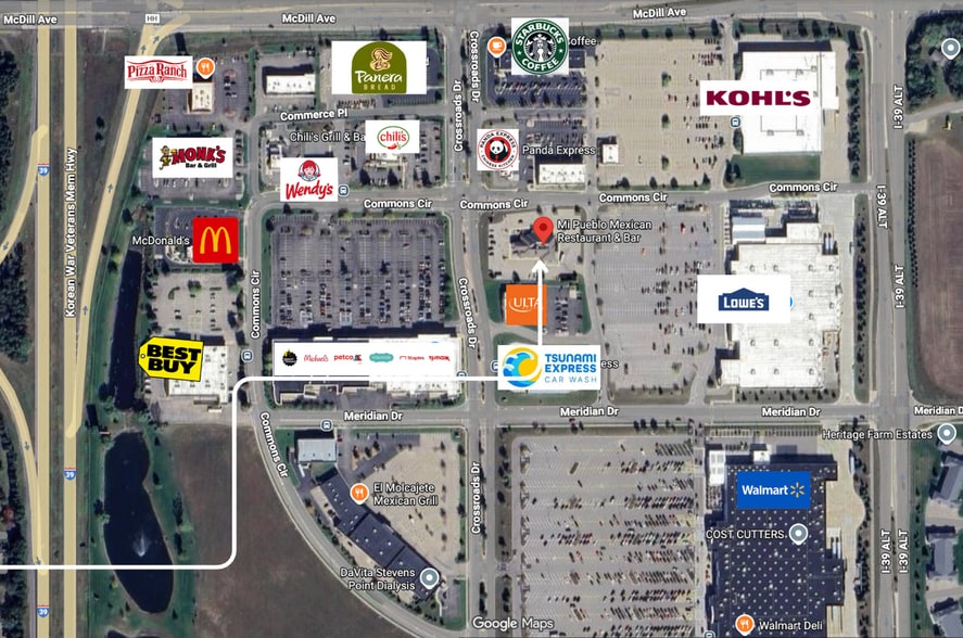 190 Crossroads Drive is located in one of the most significant traffic nodes in the Stevens Point–Plover market, anchored by Walmart and Lowe’s, which generate consistent daily and regional draw.? This concentration of big-box retail, national dining, and service uses creates reliable, all-day traffic and positions the area as a primary commercial destination rather than a pass-through location.?