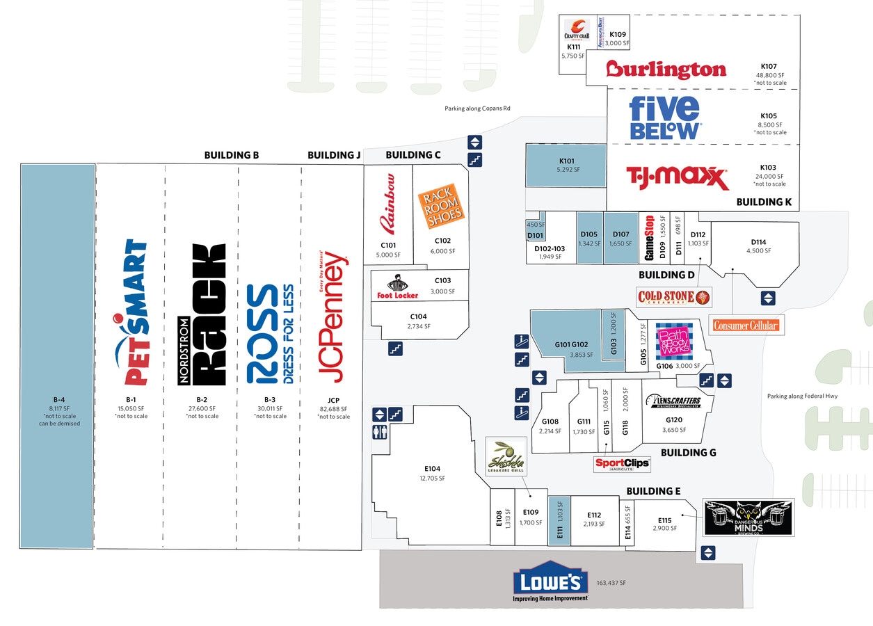 Pompano Citi Centre is a high-end power center. The property is anchored by Lowe's, JCPenny, Burlington, TJ Maxx, Ross Dress for Less, Petsmart, Big Lots and Five Below, and constitutes the largest critical mass of retail space in northeast Broward County. The property is located in a strategic location along Federal Highway (US-1). This unique property is eye-catching and has been perfectly maintained. The site has 327 feet of frontage on North Federal Highway. The property has access via three ingress/egress points is on the east side of Federal Highway.