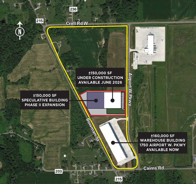 Welcome to the newly developed 1900 Airport West Pkwy. warehouse building in Mansfield, Ohio. Enjoy +/- 150,000 SF, Office Built-to-Suit, LED (occupancy sensored) Lighting throughout, 32' Clearance Height, 480/277 Volt, 3-Phase, 4 Wire Power, ESFR Sprinkler System, Docks & Doors Built-to-Suit, Ample Car and Truck Parking, Delivering in June 2026. Looking for more space? Add +/- 150,000 SF speculative expansion west to the existing building. Sale Price: $95/SF | Lease Rate: $8.50/NNN The neighboring property at 1750 Airport West Pkwy. is also for sale and lease. Take advantage of +/- 160,000 SF (1,400 SF Office), LED (occupancy sensored) Lighting throughout, 32' Clearance Height, 480/277 Volt, 3-Phase, 4 Wire Power, Wet Sprinkler System, 17 Ext. Docks, 8 Drive-Ins (12'x16'), Ample Car and Truck Parking, Available Now.