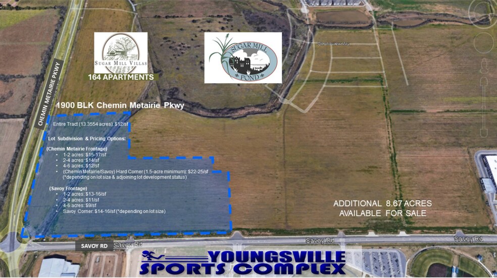(3) Sugar Mill Pond sites available for sale in the heart of Youngsville’s rapidly growing Chemin Metairie Pkwy retail corridor: