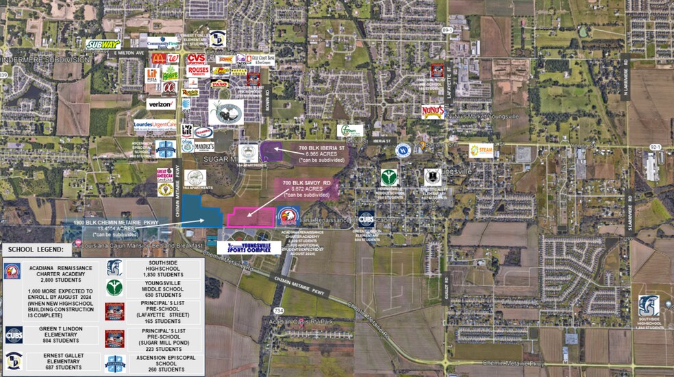 Within 1.5 mile radius of (8) schools with approximately 7,500 students enrolled (Acadiana Renaissance Charter Academy is expected to add an additional 1,000 students by August 2024-2025 school year, upon completion of new high school building)