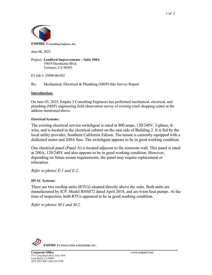 | Center Properties | 1 | Cross Streets | SWC 190th & Hawthorne |
