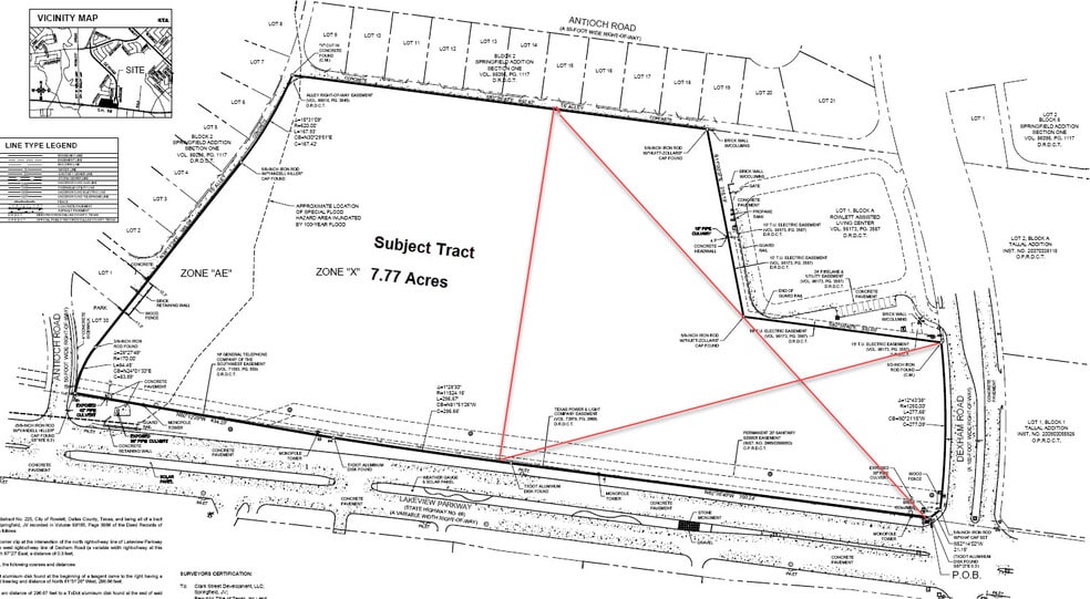 This 7.77-acre tract is the western portion of what was a 14.6-acre site. The eastern 6.85-acre portion sold to a grocer (LIDL) on June 22, 2017, but LIDL has decided not to come to Texas at this time. This tract has a gentle slope to the north and west and has approximately 680' of frontage on Lakeview Parkway. It is zoned PD C-2 Commercial and allow for most forms of heavy commercial uses. Lakeview Parkway is six lanes with a divided median. Will subdivide to sell pad sites on frontage. This 7.77 acre tract is located in the NWQ of Lakeview Parkway (US Highway 66) and Dexham Road in Rowlett, Texas near the Home Depot Center. The intersection of Lakeview Parkway and Dexham Road is controlled by traffic signals with separately signaled turning lanes on Lakeview Parkway at this intersection. The 2014 NTCOG traffic count on Lakeview Parkway was 37,115 per day with 5,601 traveling on Dexham Road to/from Lakeview Parkway.