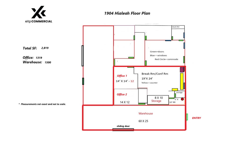 Located in the heart of Seabrook just off FM146, 1904 Hialeah St offers a rare flex space opportunity perfect for service businesses like HVAC, plumbing, general contracting, roofing, and fencing. Property would even make a great daycare or even preschool location. This versatile property boasts 2,563 SF of office space and 3,075 SF of warehouse space, totaling 5,638 SF. What truly sets it apart is the negotiable, stabilized yard space spanning over an acre—ideal for equipment storage or fleet parking. The property is secure with fencing and surveillance cameras, ensuring peace of mind. Inside, a well-appointed showroom, five offices, and a conference/break room provide a professional setting, while the warehouse features a roll-up door and sliding doors for easy access. Don’t miss out on this prime business location! - Space can be split into 2 flex spaces each with @ 2819 SF of total space: 1,319 SF office and 1,500 SF warehouse Space, or take the entire 5,638 SF. Between that and yard space the options are endless..