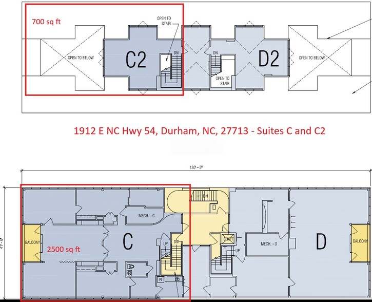 - Suite C: 2,500 SF | Suite C2: 700 SF(700–3,200 SF)