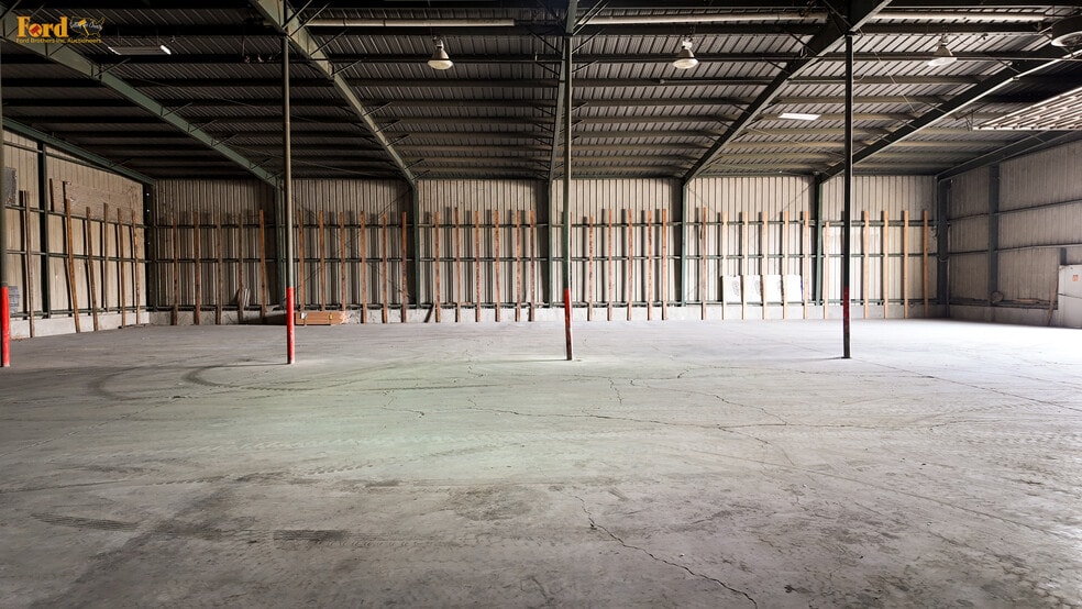Large open warehouse suitable for storage or light industrial operations. Multiple garage door access points and nearby loading dock areas allow efficient logistics and material handling