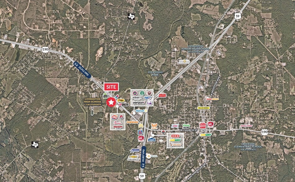 Livingston Town Center - Last Frontage Pad 1925 US Highway 190 1.18 Acres of Commercial Land for Lease in Livingston, TX 77351