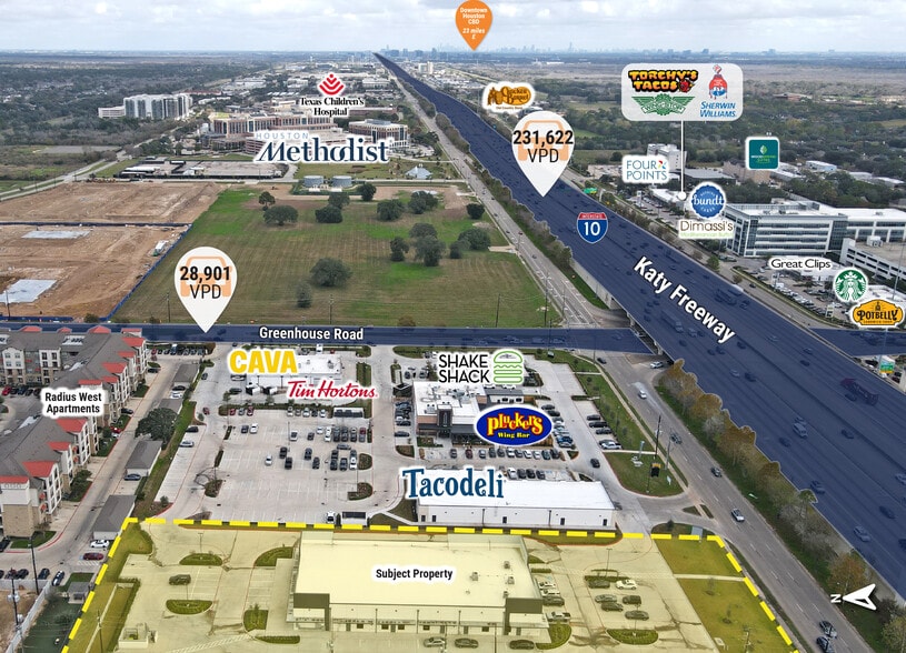 Strategically positioned near major healthcare hubs such as Houston Methodist West Hospital and Texas Children’s Hospital West Campus, the property benefits from proximity to significant employment and patient traffic, enhancing its appeal for both medical and retail tenants. Other nearby retailers include: Pluckers Wing Bar, CAVA, Taco Deli, Chick-Fil-A, and Starbucks.