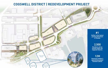 Purdy’s Landing is located on the second-floor pedway level of Purdy’s Wharf at 1949 Upper Water Street in Halifax, Nova Scotia. The property is part of a Class AAA office complex totaling approximately 700,000 square feet and includes a covered parkade with 1,080 spaces. It is connected to Atlantic Canada’s longest pedway system and offers access to the Halifax Harbour boardwalk. The site is adjacent to the Cogswell District redevelopment area and is within walking distance of hotels, the convention center, and multiple transit routes.
