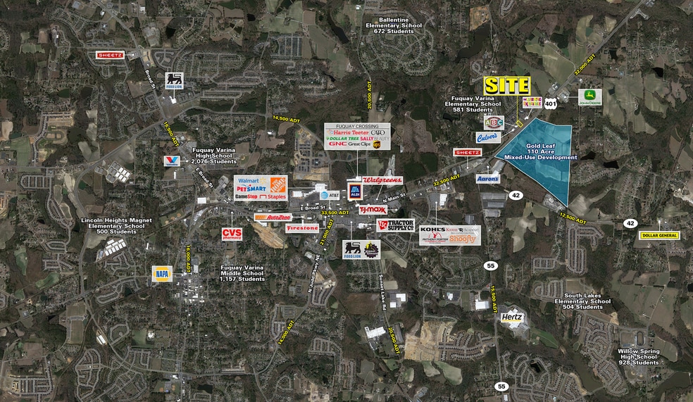 - Gold Leaf will change the trade area dynamics of Fuquay-Varina, putting this site in the center of the focus