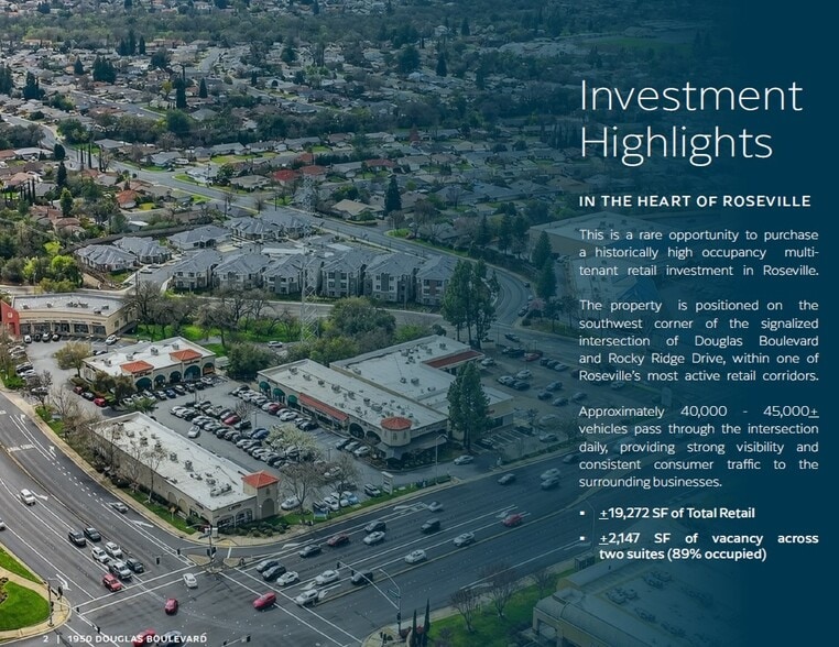 The property is positioned on the southwest corner of the signalized intersection of Douglas Boulevard and Rocky Ridge Drive, within one of Roseville’s most active retail corridors.