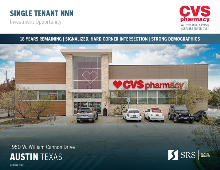CVS | 18yrs Corp NNN | DriveThru 1950 W William Cannon Dr 13,225 SF Retail Building Austin, TX 78745 $13,251,408 CAD ($1,002.00 CAD/SF) 5.35% Cap Rate