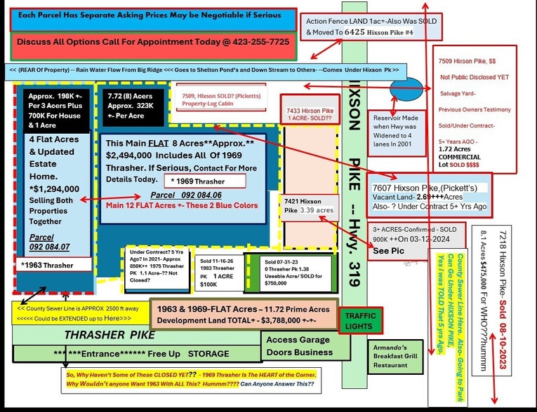 Comp #1 Residential House 6814 Hixson Pike with 6.94 Acres, Sold 12-28-23 For $295K +-Per Acre- $2,050,000- On A Hillside & Now Building More TOWNHOUSES Here.