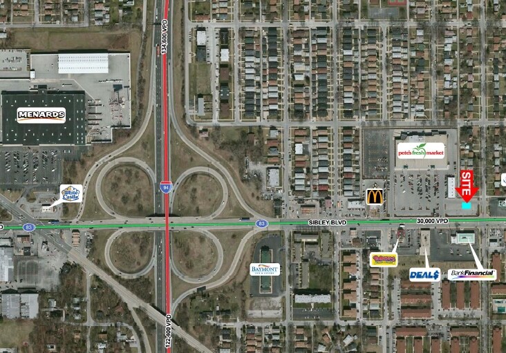 - Traffic counts: 30,000 VPD on Sibley Blvd. and 134,600 VPD on I-94