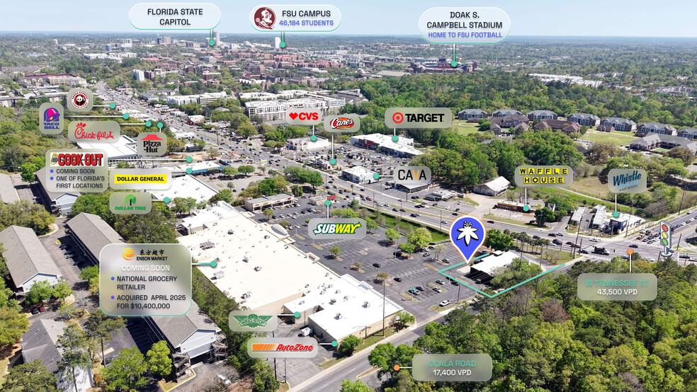 3. Investment-Grade Location: Positioned along West Tennessee Street, one of Florida State University's primary thoroughfares. With traffic counts exceeding 43,500 vehicles per day, the property offers strong visibility and access, supporting its position as an investment-grade location.