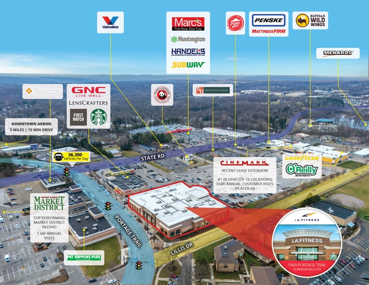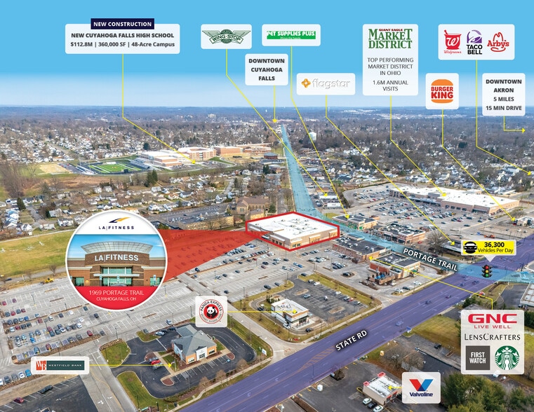 The 45,000 square foot standalone gym is located near the hard corner signalized intersection of Portage Trail and State Rd, which sees over 36,300 VPD. The subject property is within 35 miles of Cleveland (CSA population exceeding 3.6 million) and is surrounded by national retailers. Nearby retailers include Menards, Acme Fresh Market, Market District Supermarket, Walgreens, McDonald’s, Chipotle, Starbucks, Dunkin’, Taco Bell, Arby’s, KFC and more.