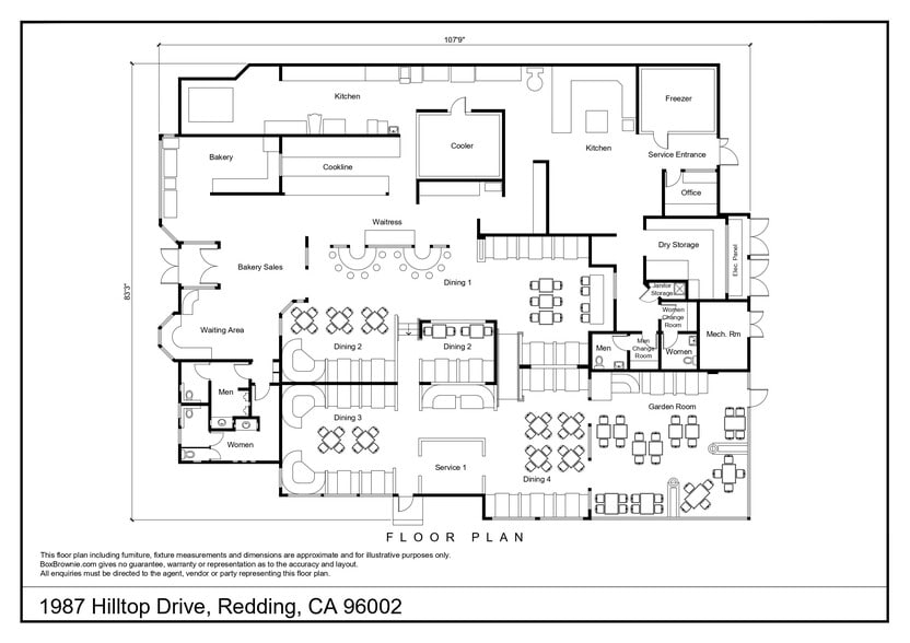 Fully equipped restaurant build-out in a prime central Redding location near I-5 and Hwy 44 intersections. This former Marie Callender's offers a functional restaurant floor plan with seating for up to 210 guests as currently configured. FF&E is included in the lease, and key features include 2 hoods, 2 walk-in coolers, a large oven, and a 1,250-gallon grease trap. The landlord may consider dividing the space into a smaller footprint for qualified tenants, providing flexibility for a variety of concepts.