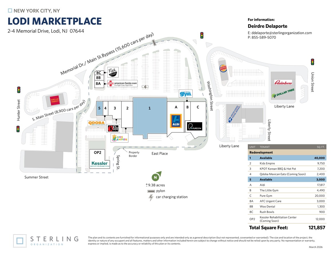 Lodi Marketplace is a 9.38-acre, grocery-anchored property located in Lodi, NJ, a dense suburb of New York City approximately 10 miles northwest of Midtown Manhattan. The center was constructed in 1979 and includes over 200 parking spaces. Lodi Marketplace is located on Memorial Drive, the town's main retail thoroughfare. Over 278,000 people live within 3-miles of the property, where the average household income is approximately $92,000.