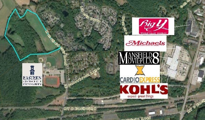 41+/- acres on the corner of Mansfield City Road and Pleasant Valley Road, and abutting Eastern Connecticut State University Athletic fields. Nearby retail, downtown Willimantic and just 10 minutes to the University of Connecticut.