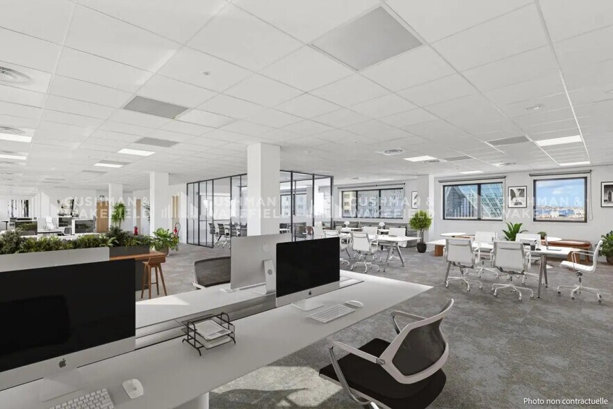 CUSHMAN & WAKEFIELD offers office spaces for sale in the dynamic Euroméditerranée district in Arenc Marseille (13002). The building features renovated floors with quality amenities: open space, ADA-compliant elevator, terraces on the 1st and 5th floors, security, reception hall, and private parking. These offices for sale have excellent accessibility: tram T3 (Salengro-Bachas station), Saint-Charles TGV station 8 minutes away, quick access to highways A55, A7, A50, and Marseille Provence airport. Located across from the future Parc des Aygalades, this site combines a professional environment with an urban setting undergoing transformation. Interested in these professional spaces? Please contact us for more information. Offices for sale - Marseille 13002, Euroméditerranée ERP: Possible ERP Reception with security ADA-compliant elevator Terraces on the 1st and 5th floors 5th category ERP compliant Floors: carpet or wood-look flooring Walls: paint Suspended ceiling tiles Recessed lighting Open space Reversible heat pump