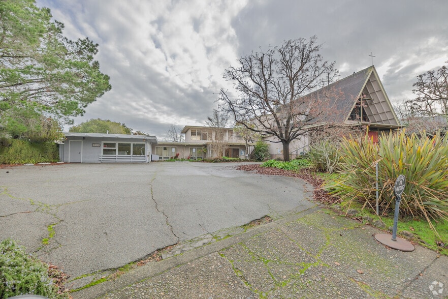 Existing church (religious) facility comprised of three buildings: Sanctuary, Administrative and (2 story) 1st floor Event-Meeting area w/ 2nd floor Residence. On site parking. (Sizes estimated from aerial drip-line measurement) +/-2,527 SF church +/-3,200 SF residential (2nd floor) unit +/-3,200 SF Meeting area, kitchen (1st floor) +/-3,100 SF office/retail bldg