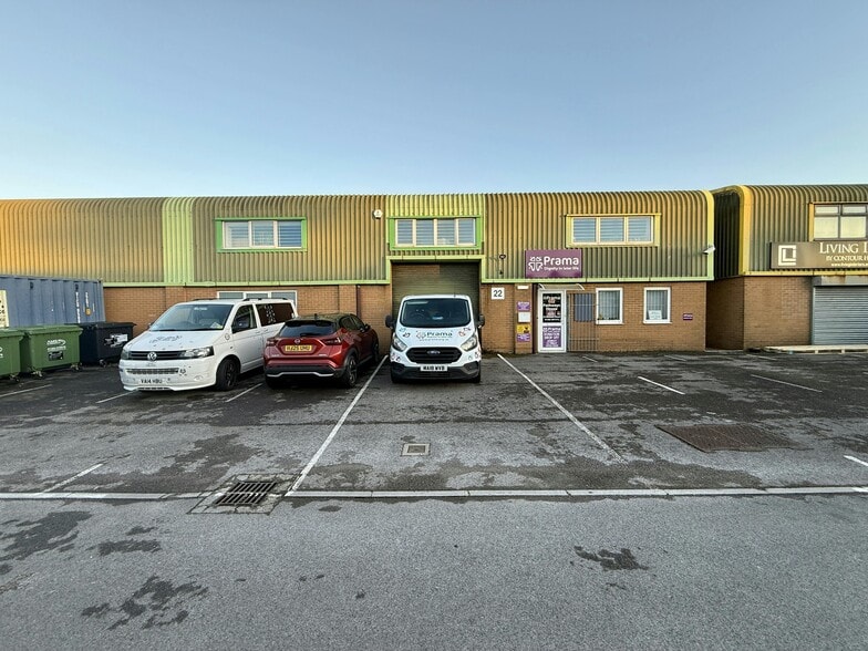 This detached premises is of blockwork inner, brick work outer construction with steel cladding to the upper elevations and the pitched roof with an internal eaves height of approx. 5m. The premises are currently arranged as two separate units. There are windows at ground and first floor levels in the front and side elevations. The accommodation is arranged as fitted offices with warehouse/storage areas. The offices benefit from suspended ceiling, lighting, carpets, air conditioning (unit 22), gas central heating (unit 20) and electric heating (unit 22). There are 2 no. loading doors providing access to the warehouse/storage areas. Externally, there is a tarmacadam forecourt providing car parking and loading access.