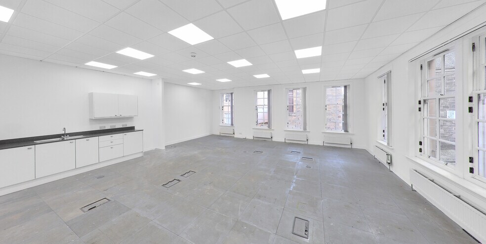 Glenorchy House is a modern, purpose built office with access via a shared entrance, with secured entry phone system, leading into a common hallway. Car parking and covered bicycle storage is available. The office benefits from a good specification including suspended ceilings incorporating compliant lighting, raised access floors with floor boxes, a gas fired central heating, double glazed windows and entry phone system. There has been a new carpet installed into the available suite and a modern kitchen unit.