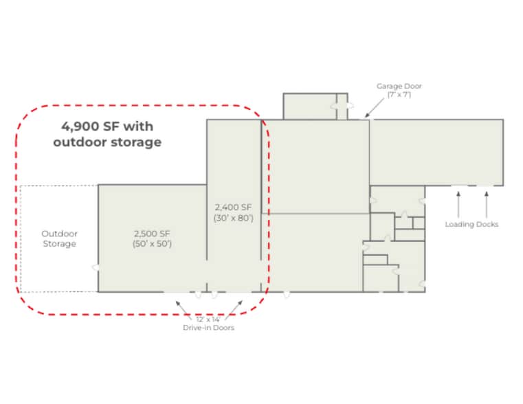 - Drive-in Door: Two - 12' x 14'; One - 7' x 7'