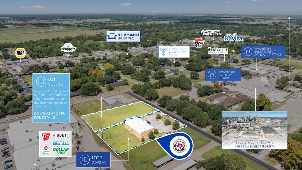 Northmarq is pleased to offer for sale to qualified investors the opportunity to acquire the fee simple interest in the property located at 200 University Ave, Wharton, Texas (the "Property"). The property is leased to the State of Texas, which carries an investment-grade credit rating of AAA by Standard & Poor's and Aaa by Moody's. This location is operated by the Department of Family and Protective Services (DFPS).