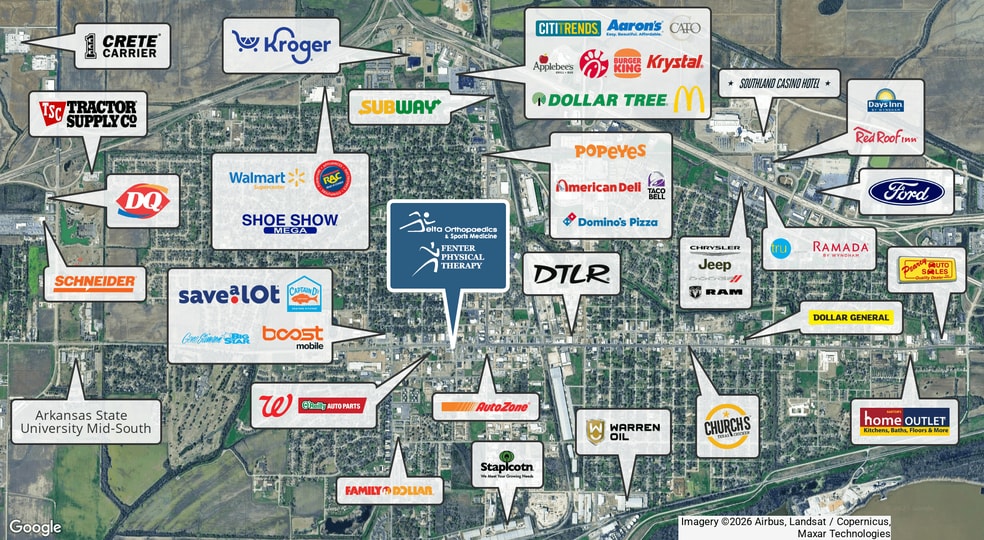 Sands Investment Group is pleased to exclusively offer for sale the 8,224 SF Delta Orthopaedics & Fenter Physical Therapy medical facility located at 200 W Broadway Street in West Memphis, Arkansas. The offering features two well-established medical tenants executing a 5-year sale-leaseback, providing immediate and stable income. Delta Orthopaedics brings over 15 years of operating history and operates a two-suite practice staffed by three physicians and five nurse practitioners. This property presents a compelling investment opportunity backed by experienced operators and long-term healthcare demand.