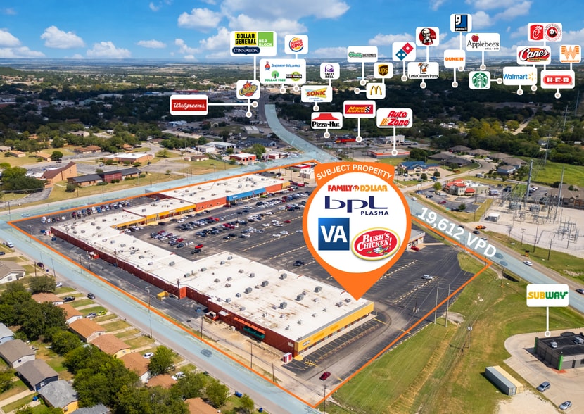 True Equity Group is pleased to exclusively offer for lease Town Square Shopping Center (the “Subject Property”) located in Copperas Cove, Texas, within the Killeen MSA. The Subject Property is a 145,338 SF neighborhood retail center situated on 14.58 acres along W Highway 190, the primary commercial corridor in the market, with approximately 19,612 vehicles per day. The center offers strong visibility, multiple points of ingress and egress, and is anchored by Family Dollar and the Veterans Affairs Community Outpatient Clinic, serving a well-established Central Texas trade area near Fort Hood. Ownership is in the beginning stages of a large cap ex project on this center that will include, but is not limited to, painting, fascia upgrades, parking lot upgrades, tenant/credit upgrades, etc. Please inquire with Alex Provost at (512) 216-5495 / ap@trueequityg.com or Jon Frager at (650) 477-0376 / jf@trueequityg.com for additional information.