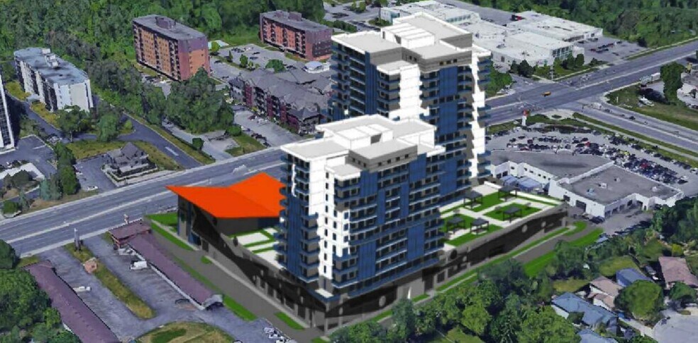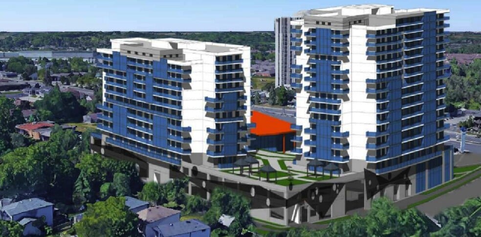An exceptional 3.12 acre commercial development site in the heart of Cambridge, site plan approved for an 18-story, two-tower project featuring 321 residential units along with a retail and commercial component. This prime mixed-use opportunity is centrally located, offering convenient access to major highways and seamless connectivity to public transit, with the LRT (Light Rail Transit) just steps away. Surrounded by a full range of amenities within walking distance, the site is perfectly positioned for a high-density development that blends residential, retail, and commercial spaces. *For architectural drawings, site plans, and additional details, please contact the listing agent.