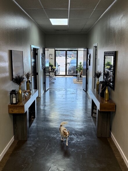 Coworking space with private suites available and open flex space. Can build out offices to suit your needs. Common areas include break room, restrooms, and common area.