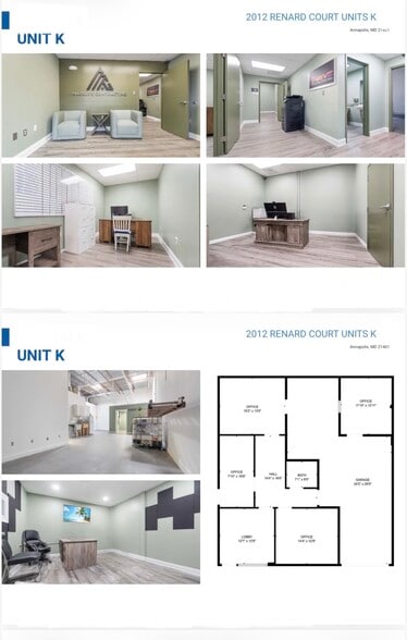 1,829 SF +/- Flex Unit Located in Annapolis Zoned W2 (Light Industrial). Floor Plan Offers Four (4) Private Offices, Lobby/Reception Area, In-Suite Bathroom & Warehouse Space w/ One (1) Overhead Door. Former Contractor Office w/ Upgraded Finishes. Triple Net Lease - Tenant Responsible for Condo Fee, Real Estate Taxes, Insurance & Utilities. NNN Expenses: Condo Fee: $500.58 per month ($6,006.96 per year) 2025-2026 Real Estate Taxes: $285.56 ($3,426.78 per year)