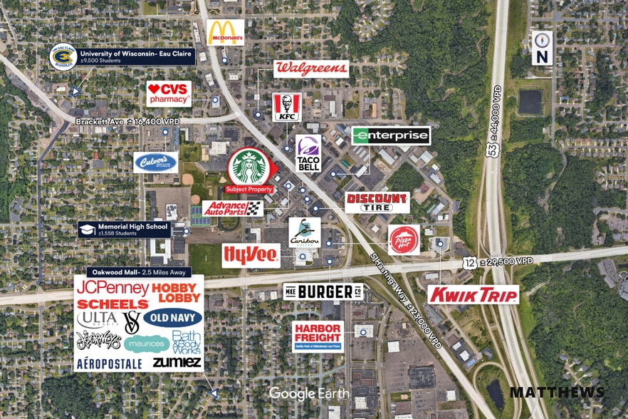 - Dominant Retail Trade Area: Positioned within Eau Claire’s primary retail corridor, surrounded by a strong mix of national and regional retailers