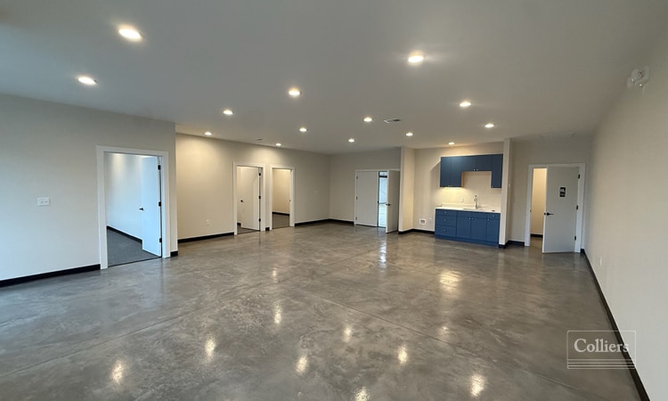 This 5,960 SF building is divided into two 2,980 SF units, each suitable for office, use. The front area is finished and conditioned, featuring 9’ ceilings, carpet, a break area (sink & space for a refrigerator) and a restroom. The back area is unfinished, insulated and unconditioned, with 11’-2” ceilings sloping to 9’ and an 8’ x 8’ roll-up door.