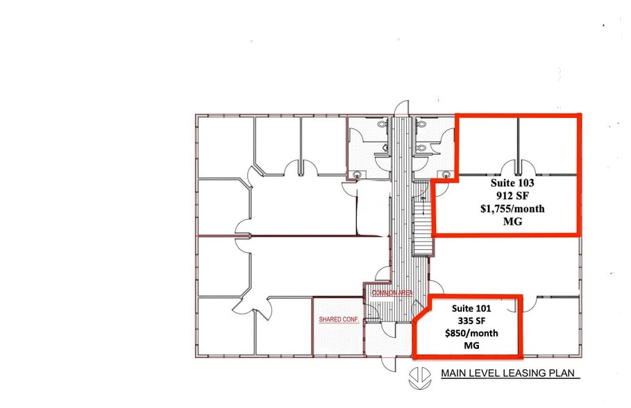 | 1st Floor, Ste 103 | 912 SF | Negotiable | Upon Request Upon Request Upon Request Upon Request | Office | Partial Build-Out | Now |