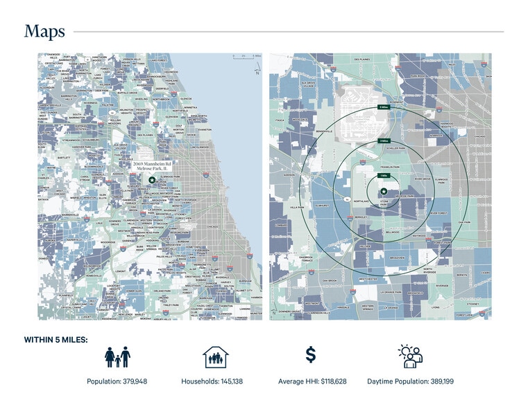 GREAT CO-TENANTS + Join TJ Maxx, Tony’s Fresh Market & Burlington HIGH TRAFFIC + 40,800 VPD on Mannheim DENSE POPULATION + 136,819 within 3 miles CONVENIENT PARKING + Head in spaces PYLON SIGNAGE + Panel available on Mannheim SPACE AVAILABLE + 10,000 SF In-Line Retail & 6,100 SF Storage Space + Easy Access Traffic Light + High Traffic 40,800 VPD + Good Signage - Pylon on Mannheim