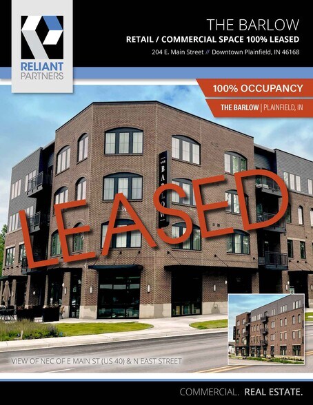 The Barlow is a mixed-use development in downtown Plainfield. It is a 4-story building with Retail/Commercial space on street level, 116 apartments on the upper 3 floors, and a 154 space surface parking lot. Available retail space is located at the NEC of E Main St (US 40) and N East St, with stoplights located at both ends of the development. Commercial tenants allocated 4 spaces per 1,000 SF leased with additional daytime and street parking available. The project is within walking distance of densely populated residential neighborhoods.