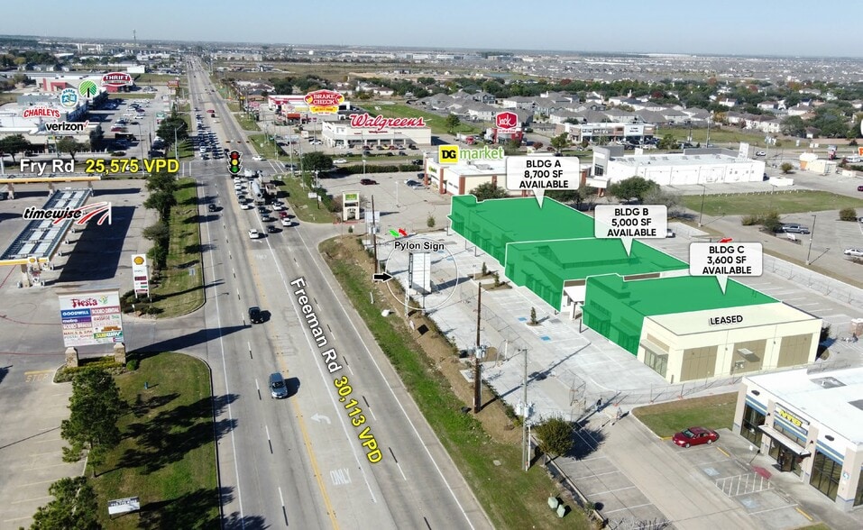529 Fry Plaza is a highly attractive commercial retail center located at 20440 Farm to Market Road 529, Cypress, TX 77433. This property is currently a redevelopment site now underway, offering businesses the opportunity to secure space in a renewed center situated at the major intersection of FM 529 and Fry Rd. The center benefits from great visibility and access and includes available pylon signage. The location is exceptionally convenient, being just two miles east of 99/Grand Parkway. Traffic and Demographics: The area around 529 Fry Plaza supports high daily traffic volumes, with counts (Source: 2024 Placer.AI) showing 30,113 VPD on FM 529 and 25,575 VPD on Fry Road. Demographically, the market within a three-mile radius is strong, reporting a population of 119,201 and an impressive Average Household Income of $119,443. Available Space: The total space available in the center ranges from 3,600 SF to 8,700 SF. Current specific leasing opportunities include a 5,000 SF space, a 3,600 SF End Cap, and an 8,700 SF End Cap.