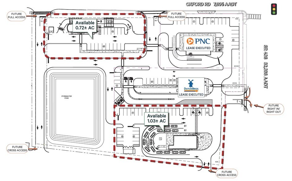 This property includes two remaining pad opportunities, alongside executed leases with PNC Bank and Dutch Bros Coffee. Two remaining parcels of approximately 1.03 acres and 0.72 acres provide flexibility for future development. The property benefits from strong visibility along SR 436 and is located one block from the regional intersection of SR 436 and US Hwy 17 92. Its central position within a well established retail corridor serves Casselberry, Maitland, Longwood, and Altamonte Springs, with surrounding residential and commercial density contributing to consistent traffic patterns. The site is zoned MTMU (Major Thoroughfare Mixed Use) within the City of Casselberry. Nearby retailers and restaurants include BJ’s Wholesale Club, Lowe’s, Ross, Aldi, Chick fil A, Chipotle, and Starbucks, reflecting a stable and diverse trade area.