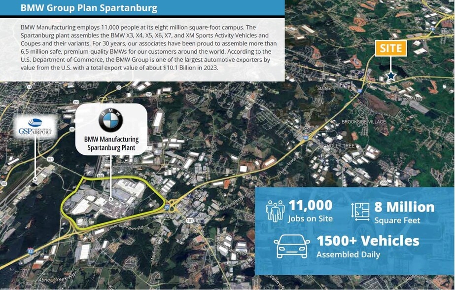 - Proximity to BMW’s Spartanburg Plant (11,000 employees on-site).
