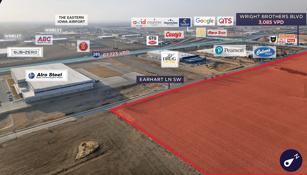 Cushman & Wakefield Iowa Commercial Advisors Exclusively Offers: 205 Wright Brothers Blvd E, Cedar Rapids, IA 52404 Found in the heart of the industrial growth of Cedar Rapids is 80 acres of available land. The land has a wide variety of opportunities and is available for both sale and lease. This location is incredibly close to I-380 and is five minutes away from the Eastern Iowa Airport which maximizes accessibility. There are multiple industrial users in the surrounding area, along with national retailers. There is also an additional 12 acres of land available around the corner. Contact listing agents for more details.