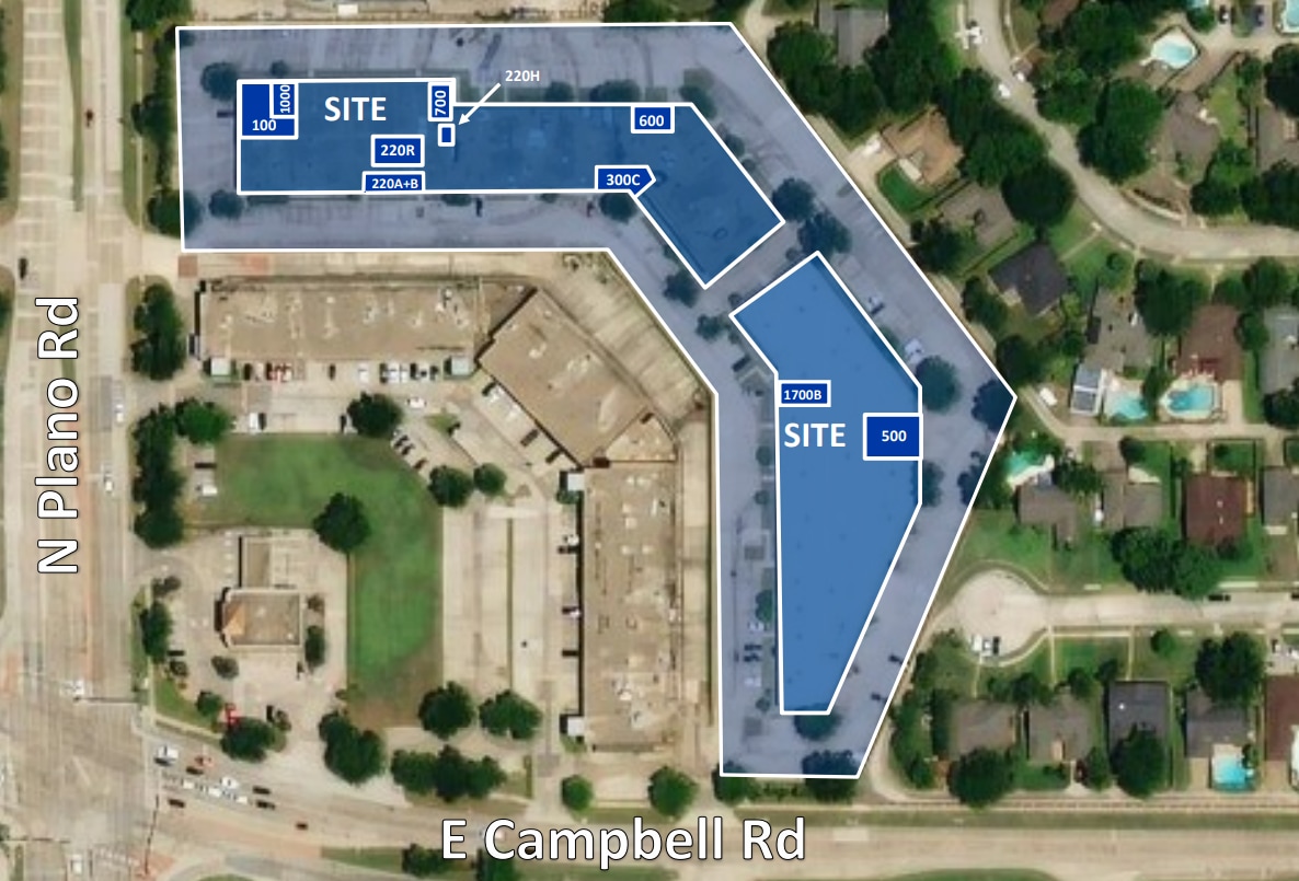 NEW OWNERSHIP AND MANAGEMENT in 2022 Improvements: new roof, updated landscaping, updated façade, parking lot re-stripe Located near the busy intersection of N Plano Rd & E Campbell Rd 1 mile from US 75/Central Expressway Various suite sizes available to fit your needs