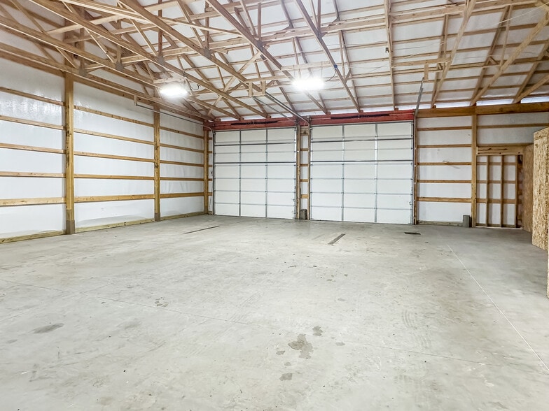 Nice post frame commercial building ready to be finished out for any business. Two overhead doors on the front of the building make it easy for any contractor style shop or maintenance business. Some framing has been completed for the bathroom and offices. Easy access to Hwy 41 and plenty of area in the front and side of the building for parking and/or additional storage.
